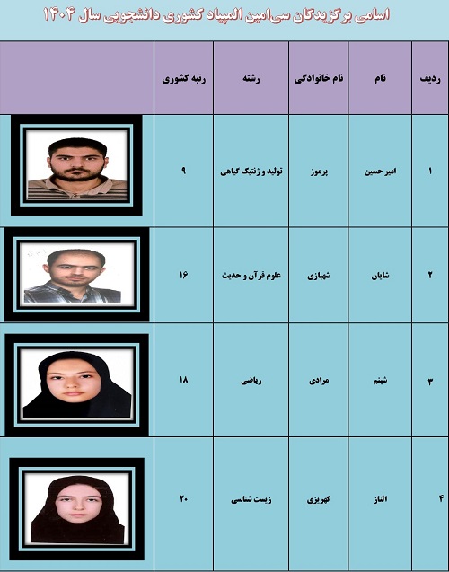 چهار نفر از دانشجویان دانشگاه رازی، موفق به کسب رتبههای برتر در سیامین المپیاد کشوری شدند.