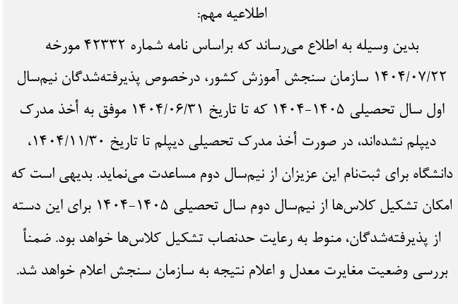 ثبت نام پذیرفته شدگان نهایی آزمون سراسری سال 1404 دانشگاه رازی آغاز شد - معاونت آموزشی